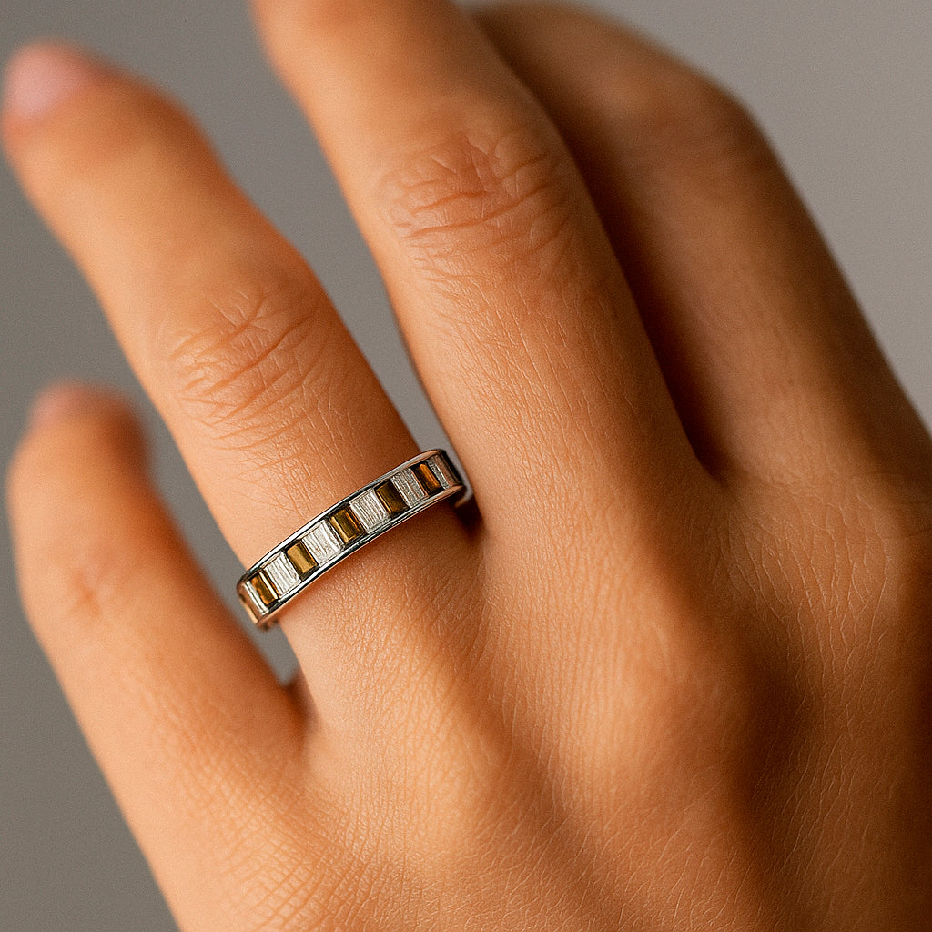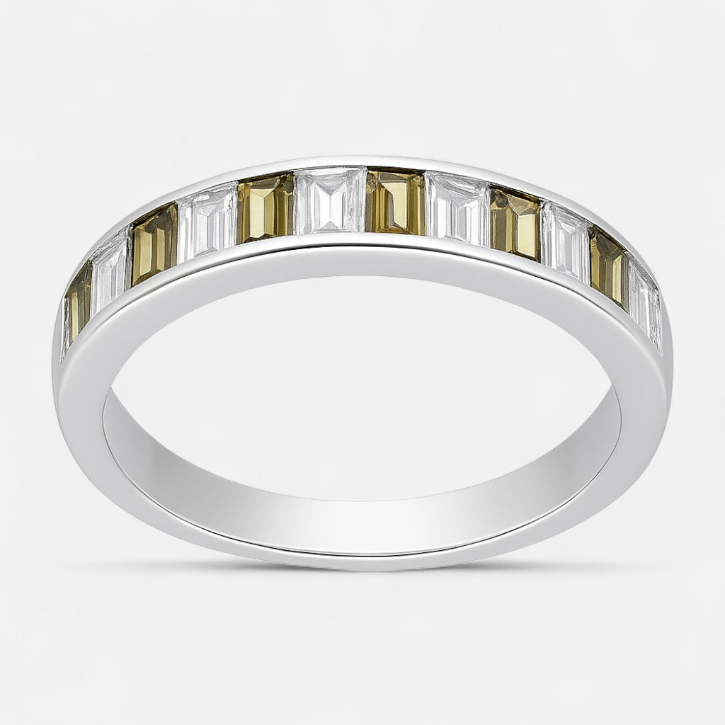 Anillo Cintillo Circones Baguette Verde Oliva