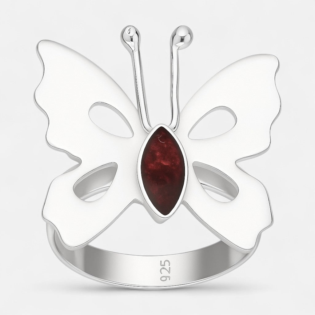 Anillo Mariposa Burdeo Metalizado