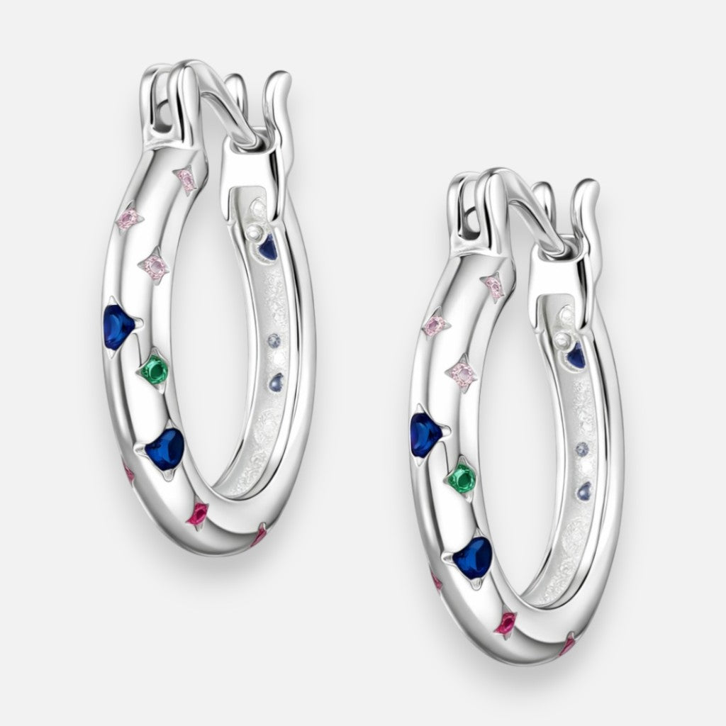 Esta Argolla con circones multicolor es versátil y colorida, combina fácilmente con cualquier estilo diario. Los circones en diferentes tonos le dan movimiento y brillo. Úsala sola o combínala con otras argollas para crear un look propio.