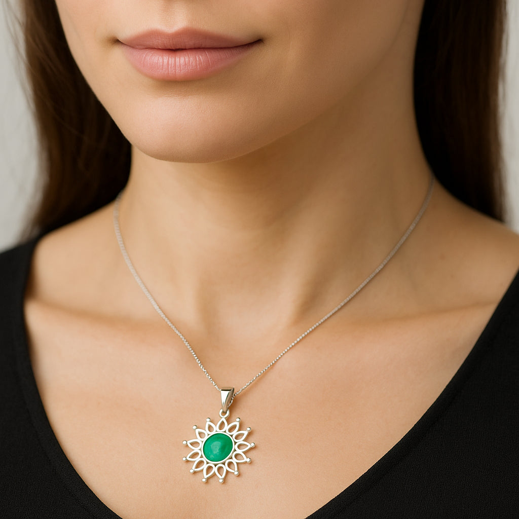 Colgante Flor Circón Craquelado Esmeralda