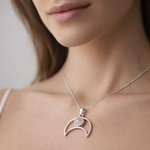 Colgante en plata 925 con diseño de Luna Invertida. La pieza combina la elegancia minimalista con un toque simbólico, perfecta para quienes buscan accesorios con significado. Ideal para uso diario o en ocasiones especiales. La luna invertida representa transformación y renovación, convirtiéndola en una pieza versátil que complementa tanto collares delicados como cadenas más robustas.