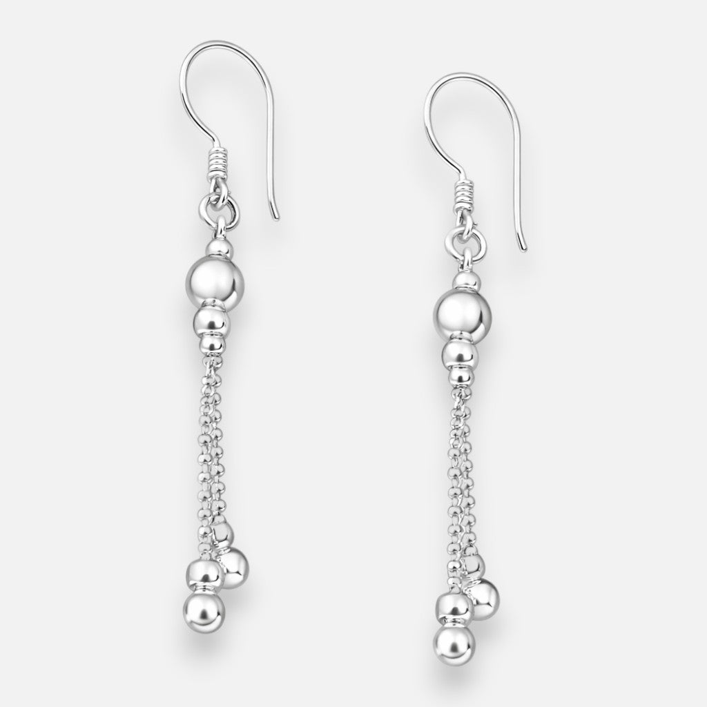 Aro largo en plata 925 con diseño atemporal que combina cadenas delicadas con esferas facetadas. Pieza versátil perfecta para uso diario o casual, que se adapta a cualquier estilo y ocasión. Ideal para quienes buscan joyería funcional que trascienda las tendencias. Largo: 35 mm