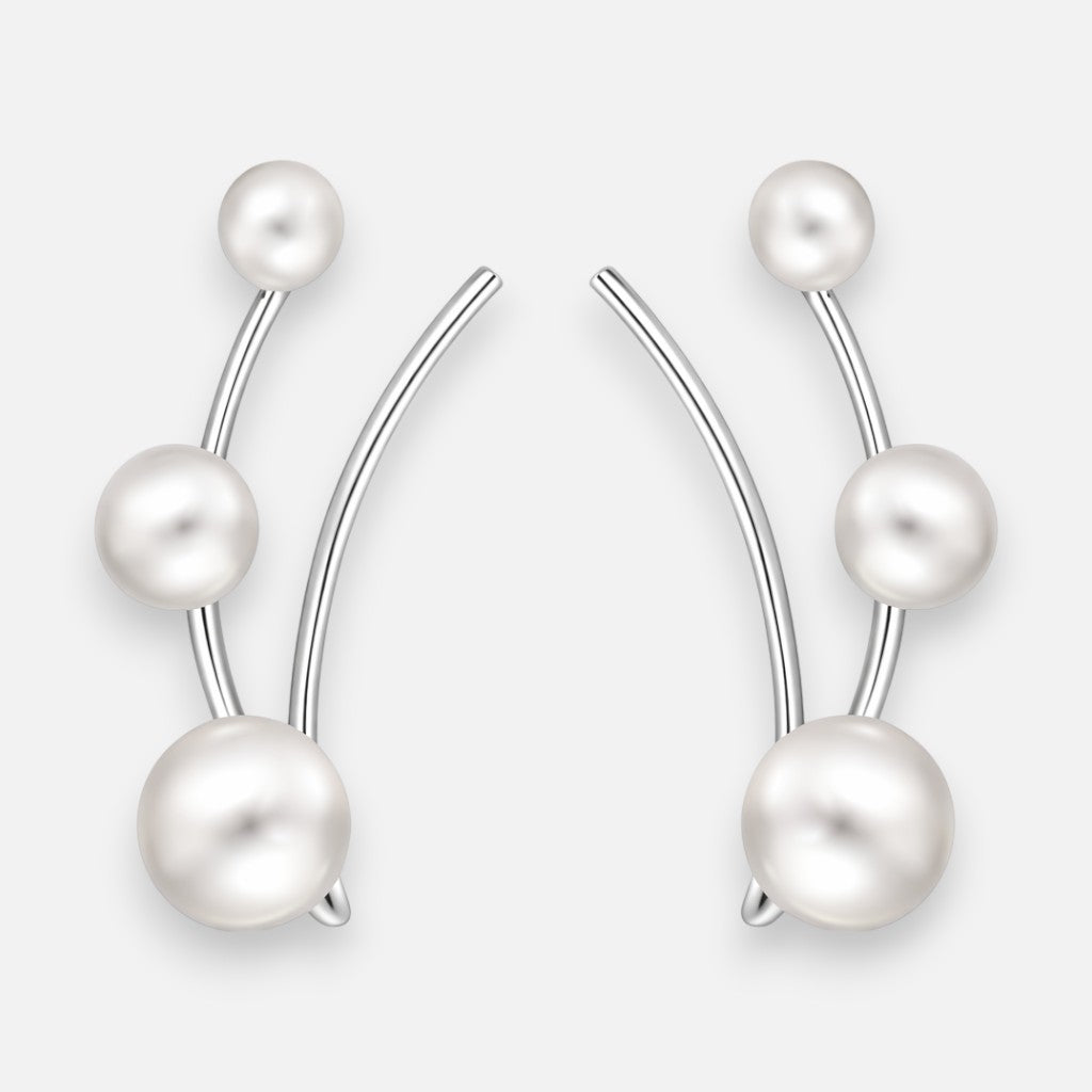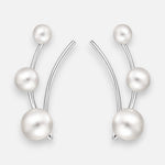 Aro trepador de plata 925 con delicadas perlas que abrazan la oreja en un diseño elegante y minimalista. Perfecto para quienes buscan un accesorio versátil que combina sofisticación con comodidad. Su acabado realza la delicadeza de las perlas, creando un efecto luminoso que complementa cualquier look, desde lo casual hasta lo formal. Ideal para usar solo o acompañado de otros aros. Alto: 18 mm Perlas: 3 mm 4 mm 5 mm