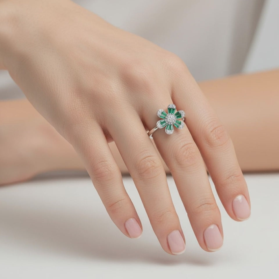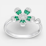 Anillo Ajustable Flor Circones Baguette Esmeralda