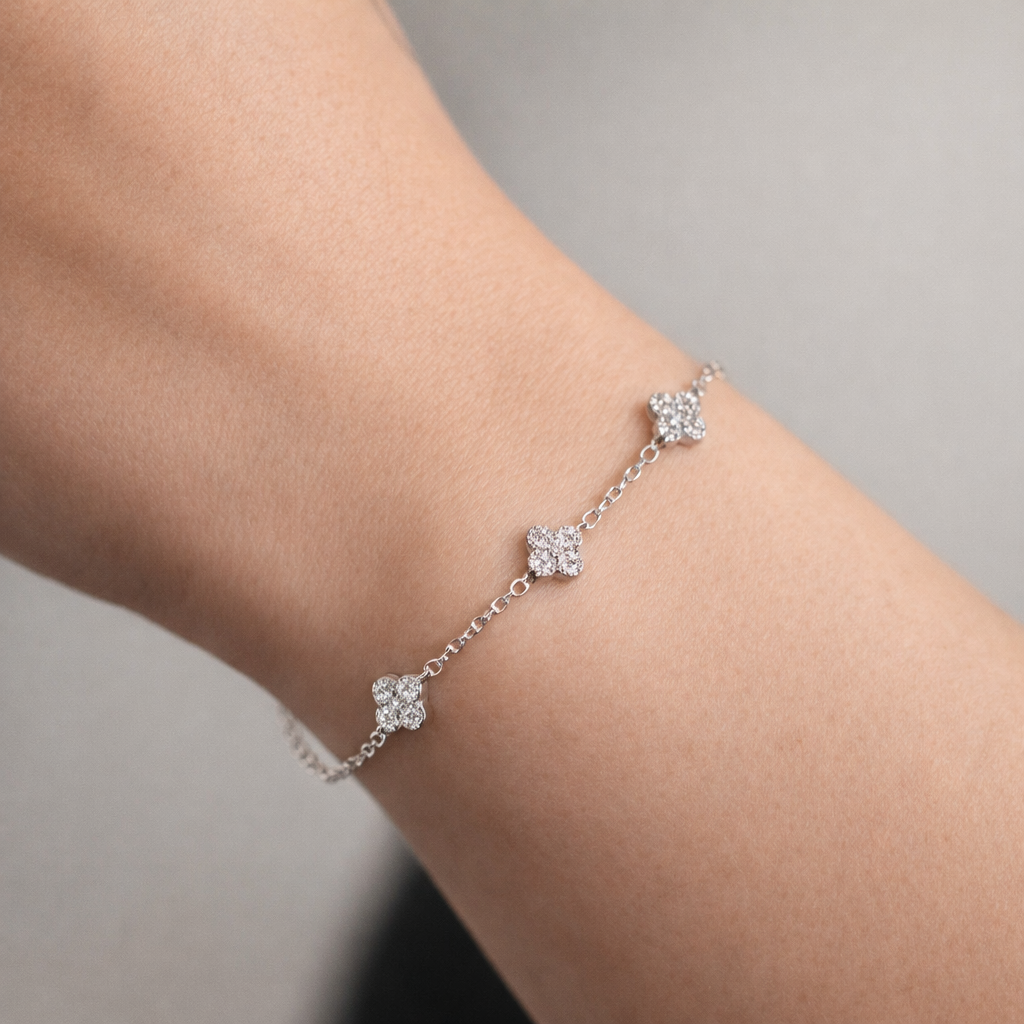 Precio unitario porPulsera con Trébol y Circones que destacan por su delicadeza y feminidad. El trébol aporta un símbolo de buena fortuna mientras los circones brillan con elegancia discreta. Diseño femenino que se adapta a cualquier estilo personal. Ideal para vender, regalar o para consentirse así misma. Una joya que combina significado y sofisticación en cada uso.