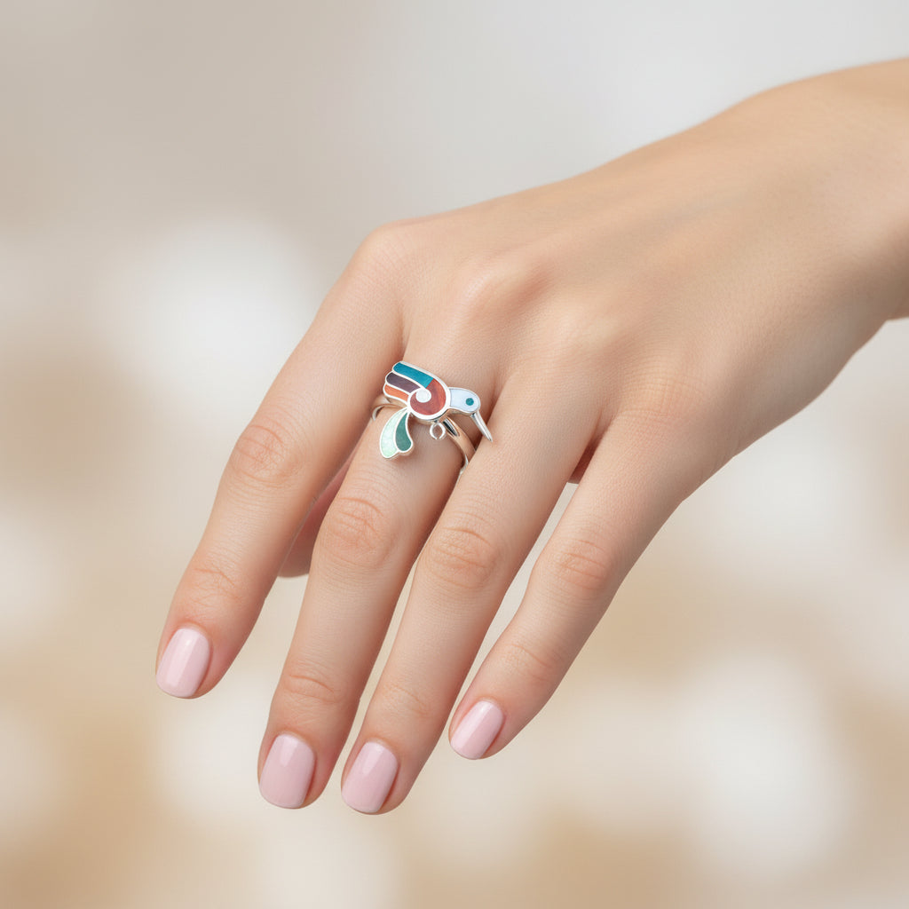 Anillo Ajustable Colibrí Piedras Naturales Multicolor