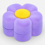 Estuche con diseño floral delicado en terciopelo lila y amarillo, pensado para guardar y presentar anillos con encanto. Su forma suave y colores complementarios crean momentos especiales en cada entrega. Práctico y elegante, es ideal tanto para regalos como para ventas, realzando la belleza de tus joyas.