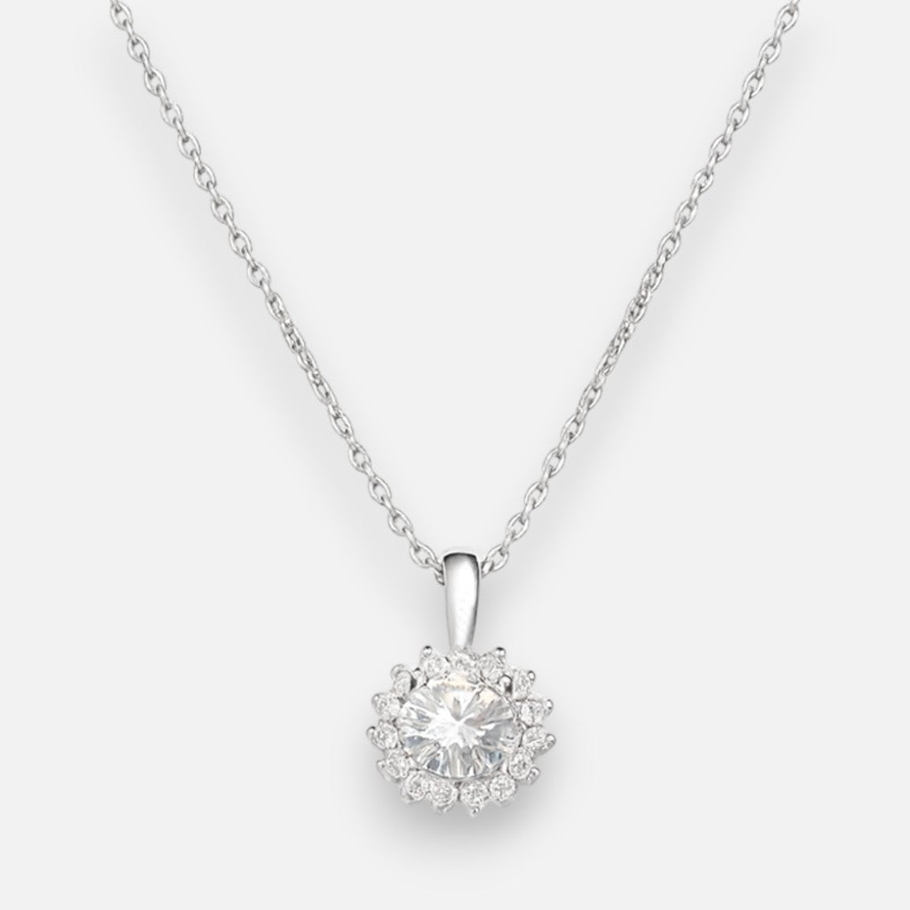 Joya de Plata Fina Ley 925 Alto: Flor 10 mm Diametro: Moissanita 6.5 mm