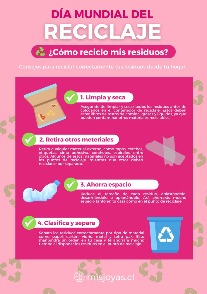 En Mis Joyas, estamos comprometidos con la sostenibilidad y el cuidado del medio ambiente. Creemos que cada acción cuenta, y reciclar correctamente es una de las maneras más efectivas de reducir nuestro impacto ambiental. En esta nota, explicaremos la importancia del reciclaje y te enseñaremos consejos prácticos de como puedes reciclar tus residuos desde tu hogar.
