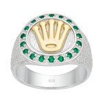 Anillo Sello Corona en Oro Circones Esmeralda